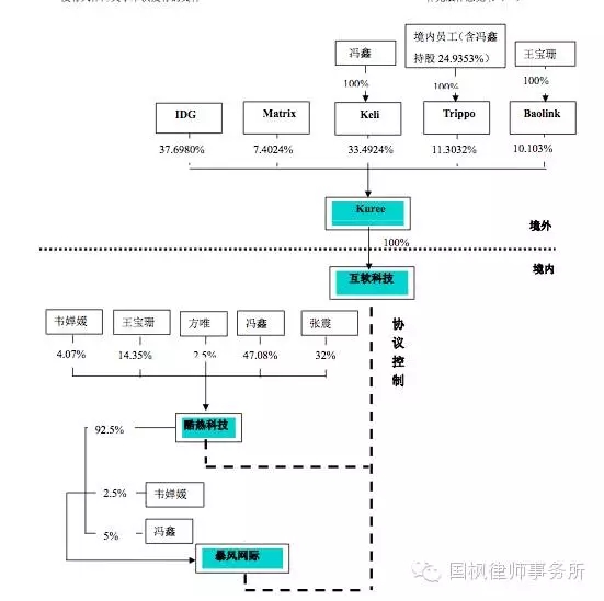 如上图可知,互软科技即VIE结构中的WFOE,并协议控制两家企业:“酷热科技”与“暴风网际”。Kuree是实际控制人及投资者在海外设立的公司(即SPV B),并100%控股WFOE互软科技。暴风科技拆VIE的过程如下:
