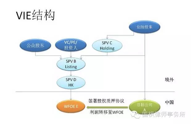 在拆VIE架构前,先简单介绍VIE架构。概言之,VIE结构是通过海外资本市场对协议控制模式下并表的认可,使得在境内运营实体的公司以其在海外的控股公司为主体申请上市成为可能的一种模式,VIE的历史成因及搭建理由已在其他文章中多有论述,因此此处不再赘述。通常而言,VIE架构如下: