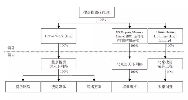 根据交易预案披露,丽满万家、搜房媒体、搜房网络、拓世寰宇和宏岸图升(以上合称“标的资产公司”)此前均存在VIE结构,为VIE架构下的运营实体公司。为进行本次重大资产重组,搜房控股拆除了上述公司的VIE结构并完成一系列重组。截至本次交易,标的资产公司的股权结构如下: