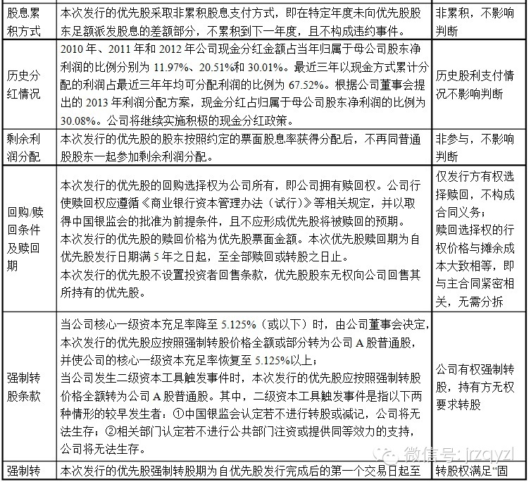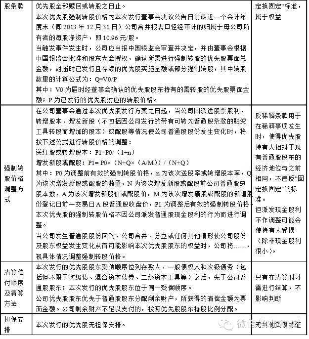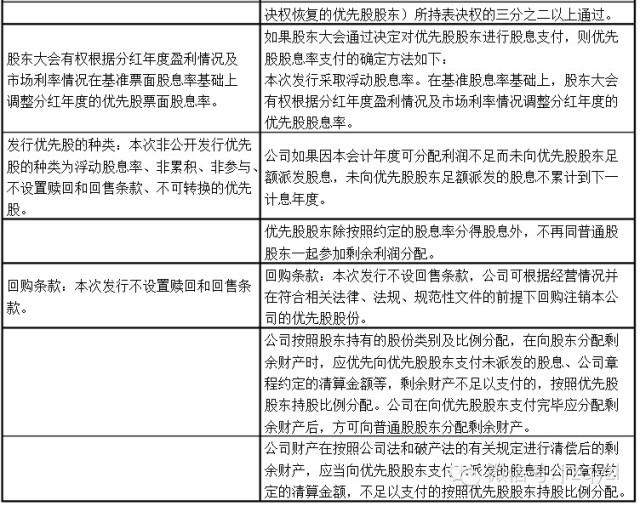2014 年 4 月 29 日,浦发银行(600000)公告了非公开发行优先股预案及新的公司章程,是《关于商业银行发行优先股补充一级资本的指导意见》(银监发[2014]12 号)发布后国内商业银行首单优先股。其非公开发行优先股的种类为固定股息率、非累积、非参与、发行方有权选择赎回、发行方有权强制转普通股的优先股。