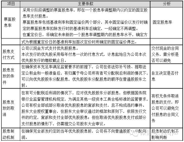 就原预案而言,条款约定“在未触发调整事项的前提下,公司的优先股股息将按照基准票面股息率进行支付。”而且调整的仅是股息率,而不能取消支付。即公司在有盈利的情况下(属于公司不能控制的事项)的强制付息是一项不能避免的合同义务。符合金融负债的定义。