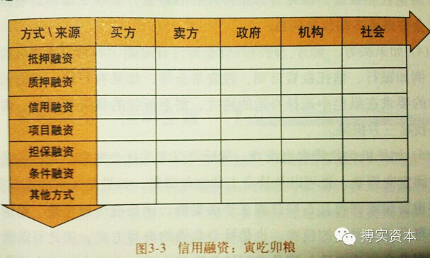 (2) 如果买方没有可能给你提供资金,我们再考虑右边的卖方。看看你的供应商有没有可能为你提供资金,如果有可能,我们可以从纵列中寻找一种合适的模式。比如房地产开发商经常使用让建筑商垫资施工的方法,就是典型的卖方信贷。