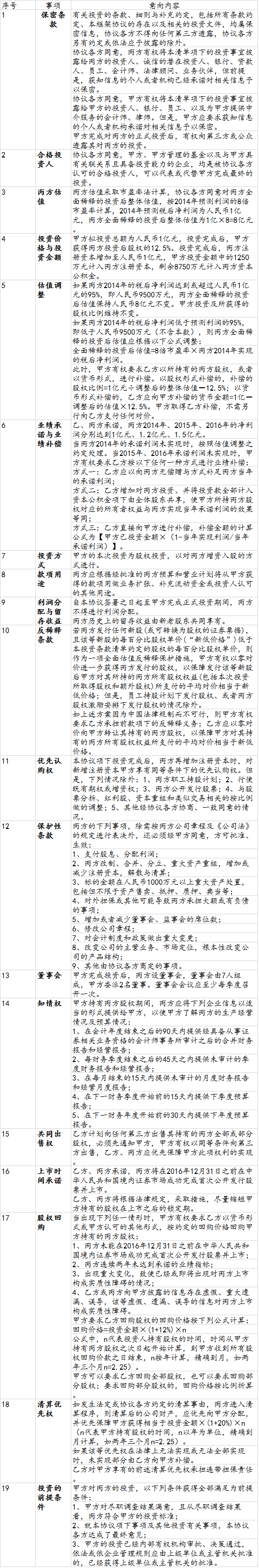 投资条款清单所列明的内容为意向性的,从这个角度讲,有时PE机构用《投资意向协议》取代投资条款清单,也有的PE机构以投资备忘录形式体现条款清单之内容。无论何种形式,其基本内容是大体相同的。