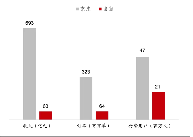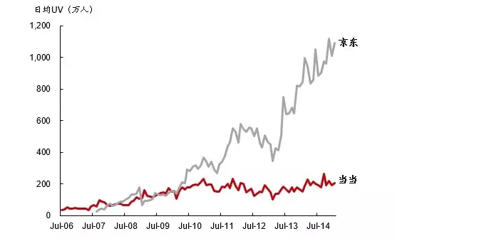 当当网曾以图书电商立网,员工多来自出版社,CEO李国庆也深谙图书产业链&定价规则,图书电商为当当盈利板块。但京东在2011年放出“5年内不允许京东图书部门盈利”的口号后,图书电商的竞争规则彻底改变了。对当当而言,考虑的是卖一本书可以赚多少钱,而对京东商城而言,图书的定位是作为电子商务主动搜索消费频率最高的标准品。如果卖一本书亏损5 元钱,但可以带来一个有效注册用户,远低于通过营销获得一个用户的成本,这个生意就非常值了。来自京东图书的降维打击,直击当当盈利生命线,后者自然无招架之力。