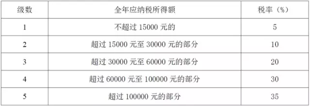 根据后续发布的《关于个人独资企业和合伙企业投资者征收个人所得税的法规》(财税[2000]91号)规定,合伙企业以每一个合伙人为纳税义务人,合伙企业每一纳税年度的收入总额减除成本、费用以及损失后的余额,作为投资者个人的生产经营所得,比照个人所得税法的“个体工商户的生产经营所得”应税项目,适用5%—35%的五级超额累进税率,计算征收个人所得税(具体如下)。