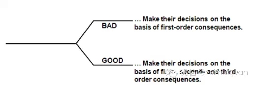 那些过分看重第一阶结果在他们的决定中的作用而忽视了第二阶以及随后其他各阶结果影响的人将会使他们的目标很少接近于他们的目标。这是因为第一阶结果通常和第二阶有着相反的条件,导致了做决定时的大错误。例如,运动的第一阶结果普遍被认为是不理想的,然而第二阶结果却是意愿的。同样地,尝起来好的食物通常是对你有害的,反之亦然。如果你的目标是身体健康,并且你没有忽视第一阶运动的结果和尝起来不错但却不健康的食物,把你的决策和第二阶以及第三阶结果联系起来,你就不会达到你的目标。