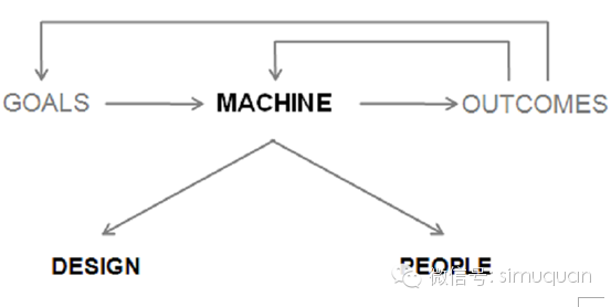 这图表明你的目标决定了你要建立的用来实现你目标的机制,机制又产出结果,那些成果你应该用来与你的目标做比较,从而去判定你的机制是如何运行的。如果你想从一片空白得到一座山,那你需要算好如何去做,好比,你的设计需要两个侦查员,两个狙击手,四个步兵,一个传递事物的人等等。然而有的设计的权利很重要,他只是半场战役,把确定的人安排在合适的位置也很重要,他们需要做好他们所在位置的角色,侦查员应该很快的跑步者,狙击手应该是精准射击的等等,如果你的成功与目标不一致,你要调整你的机制,意味着你必须调整你的设计或者你的人员。经常这样子做好,你的提高就会显而易见,否则会很糟糕。