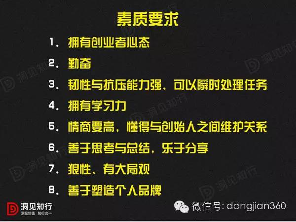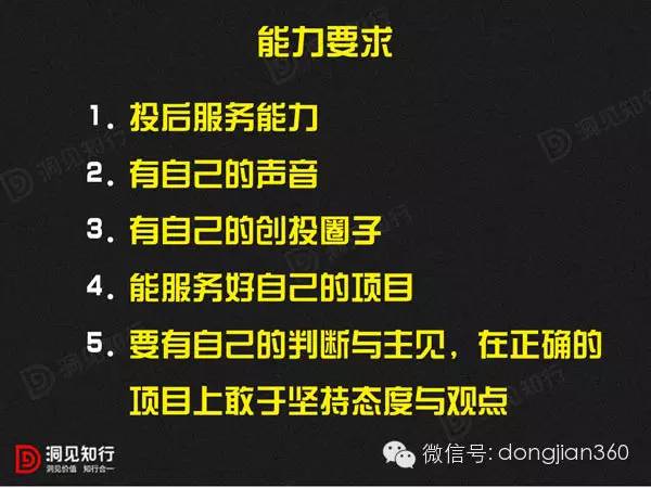 做早期投资的人必须要保持高度的敏锐市场嗅觉,时刻抓住市场的第一动向,需要了解大量丰富的专业知识,融入创业者圈子,积极的参加圈子活动。所以付出的体力上的辛苦是必须的,如果想在行业做好,肯定不是简单的早9晚6,至少是早9晚12的节奏,甚至更晚。所以我们必须用战术上的勤奋,填补认知上的不足。这就需要投资经理必须拥有创业者的心态,不是以打工的心态做事情,要明白每一天的奋斗与进步,都是在为了让自己变的更好,更专业。只有当我们变得足够专业权威之后,人们才能真正的看见你、认可你、尊重你,我们是为了自己而奋斗,而不是别人。能想通这点,在境界格局上都会有质的飞跃。