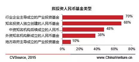 据投中数据分析得出,对于拟投资的人民币基金类型,70%的受访者倾向于投资“行业企业主导成立的产业投资基金”,这一比例较去年基本持平。这是因为对于行业企业主导成立的产业投资基金来说,其股东具有更多的资源优势、更加优质的投资项目、更多退出机会,使这一投资类型具有更大的投资价值。另外,据投中研究院分析,LP投资者注重“品牌”效应,由知名投资人或机构创立的基金比较受到青睐,同时投资人也注重“本土化”效应,相比外资,LP会更加注重内资背景的基金。