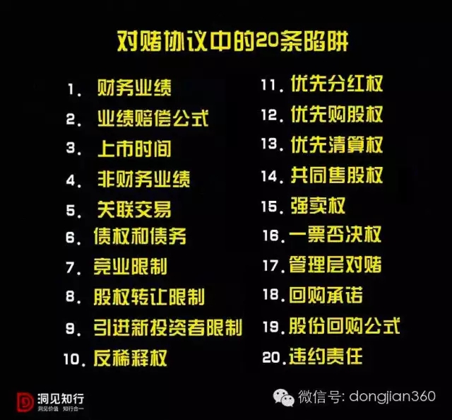 方源资本合伙人赵辰宁认为“上市时间”的约定不能算是对赌,对赌主要指的是估值。但这种约定与业绩承诺一样,最常出现在投资协议中。