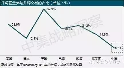 中国并购基金参与并购交易的比例不仅低于美国等发达国家,也低于巴西、印度、俄罗斯等发展中国家